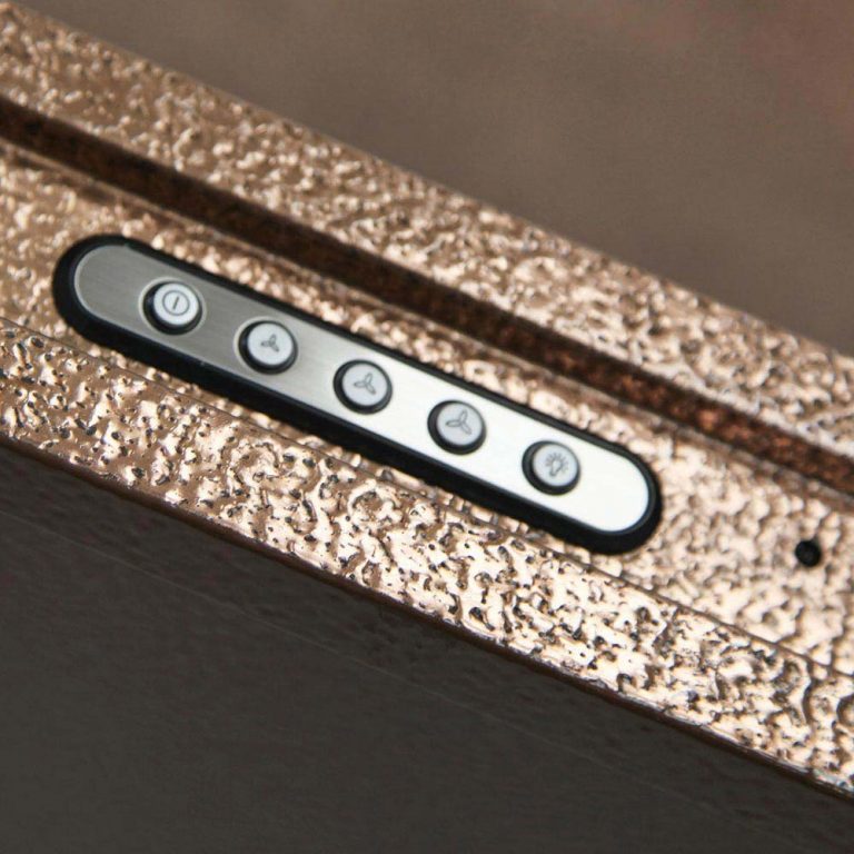 - Acabado de lámina martelinada con baños de cobre e interiores en color cobre o cobrizado electrolítico