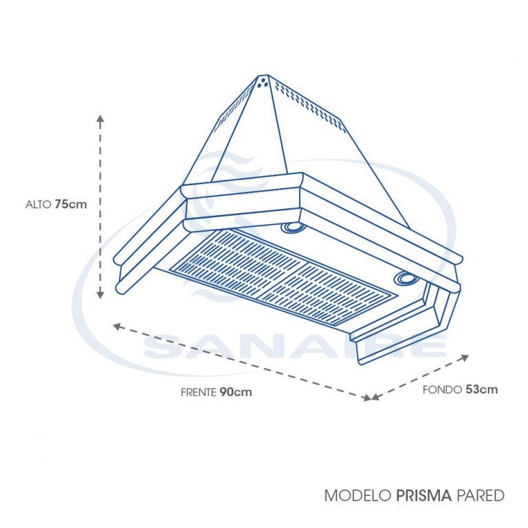 Campana de Cocina pared o muro, Acero Inoxidable, colores (esmalte) Almendra, Blanco, Gris metálico, Negro, Negro Mate, capacidad máxima 12m³ x minuto, 720m³ x hora, consumo 200W, tres velocidades, doble lámpara de led, botonera digital, control remoto, ahorro de energía.