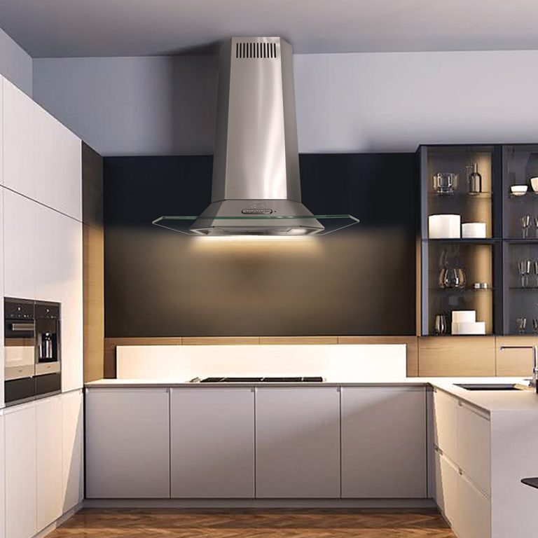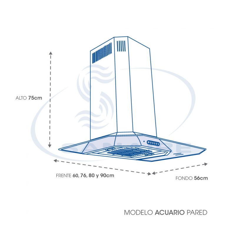 Campana de Cocina pared o muro, Acero Inoxidable, colores (esmalte) Almendra, Blanco, Gris metálico, Negro, Negro Mate, capacidad máxima 12m³ x minuto, 720m³ x hora, consumo 90W, tres velocidades, doble lámpara de led, botonera digital, control remoto, ahorro de energía.