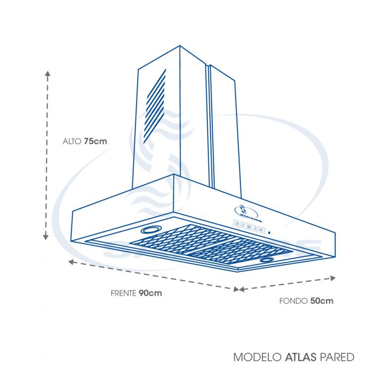 Campana de Cocina pared o muro, Acero Inoxidable, colores (esmalte) Almendra, Blanco, Gris metálico, Negro, Negro Mate, capacidad máxima 14m³ x minuto, 840m³ x hora, consumo 200W, tres velocidades, doble lámpara de led, botonera digital, control remoto, ahorro de energía.