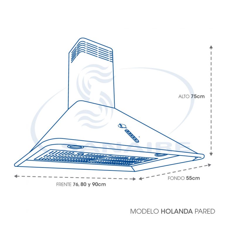 Campana de Cocina pared o muro, Acero Inoxidable, colores (esmalte) Almendra, Blanco, Gris metálico, Negro, Negro Mate, capacidad máxima 12m³ x minuto, 720m³ x hora, consumo 100W, tres velocidades, doble lámpara de led, botonera digital, control remoto, ahorro de energía.