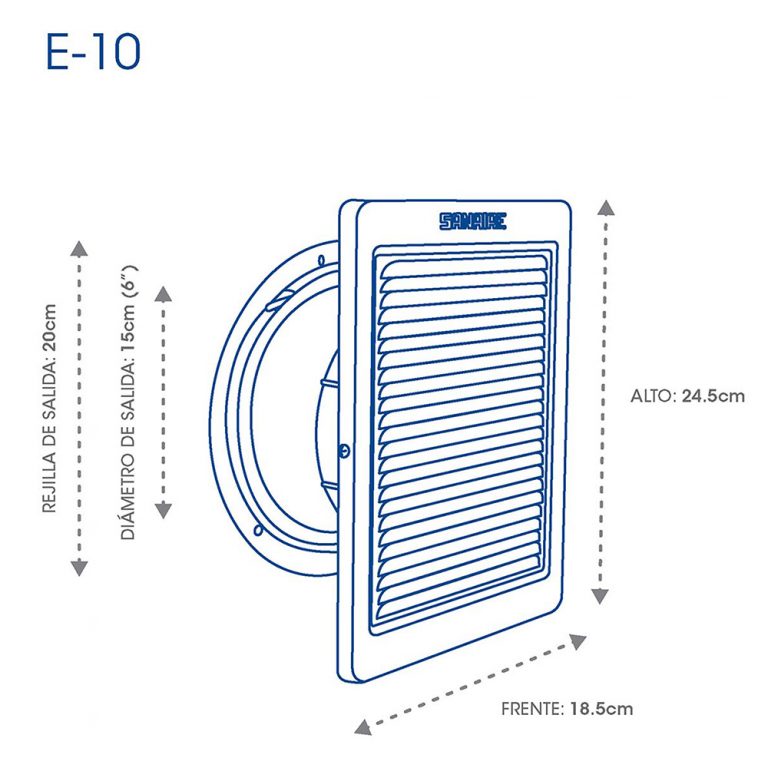 - Diámetro de salida: 6″ (15cm)