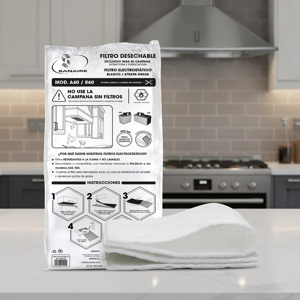 Puedes adquirir con nosotros filtros de repuesta con la medida exacta que necesita tu campana de cocina Sanaire, sin embargo también contamos con un filtro universal que se adapta a muchas campanas de cocina.