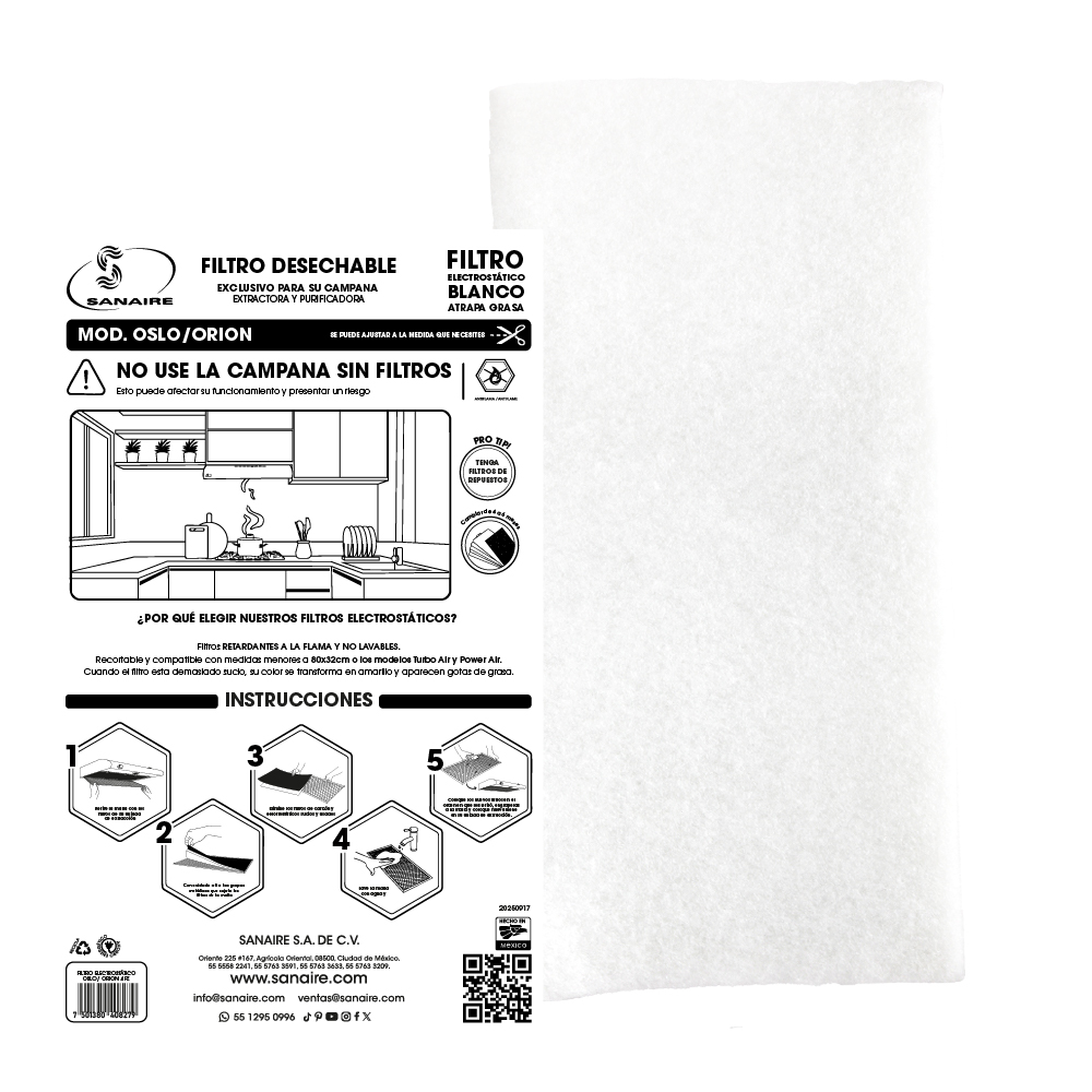 Puedes adquirir con nosotros filtros de repuesta con la medida exacta que necesita tu campana de cocina Sanaire, sin embargo también contamos con un filtro universal que se adapta a muchas campanas de cocina.